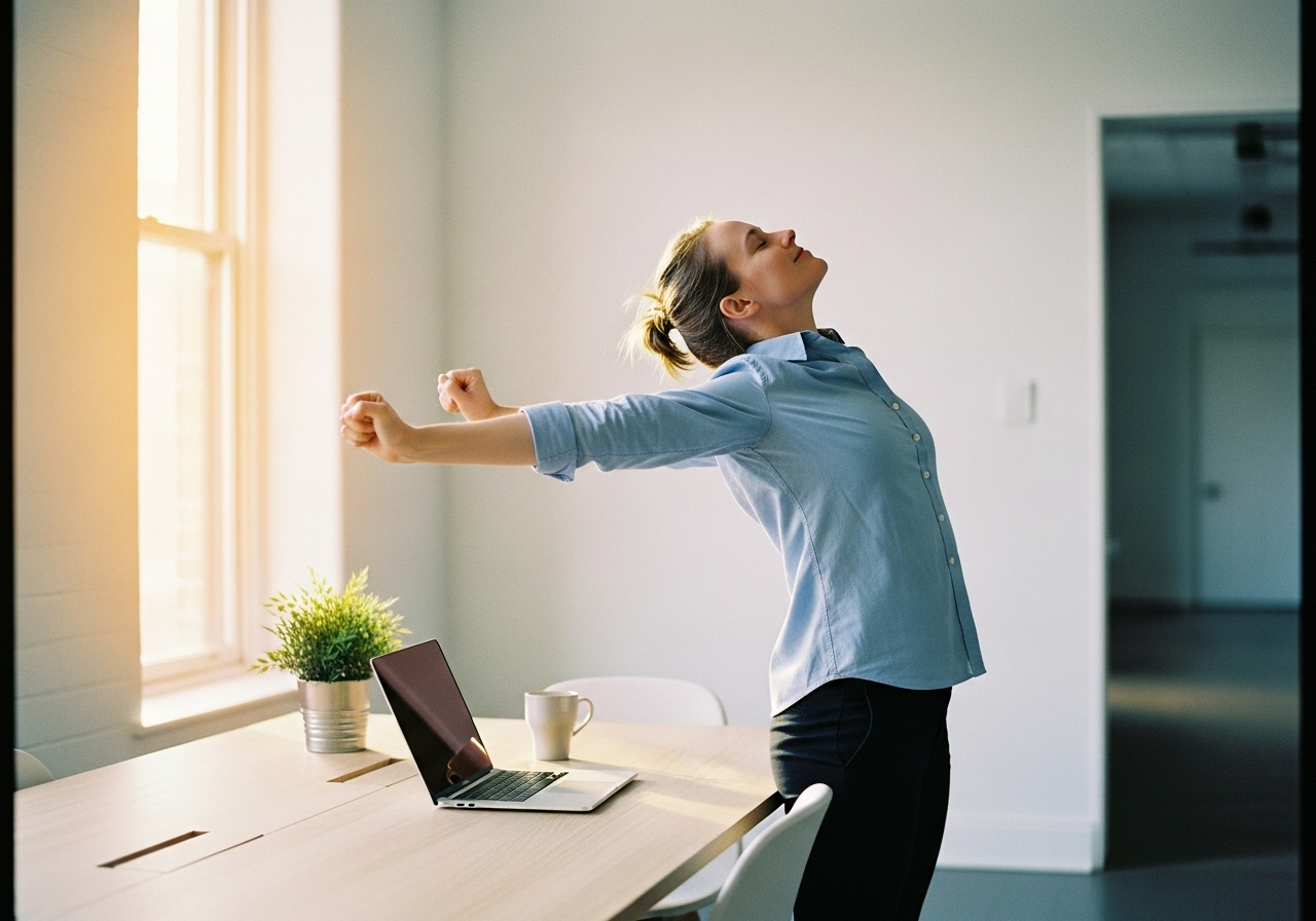 It is advisable to set a timer to remind you to pause and stretch every hour. Regular stretching can alleviate physical tension and enhance overall well-being.